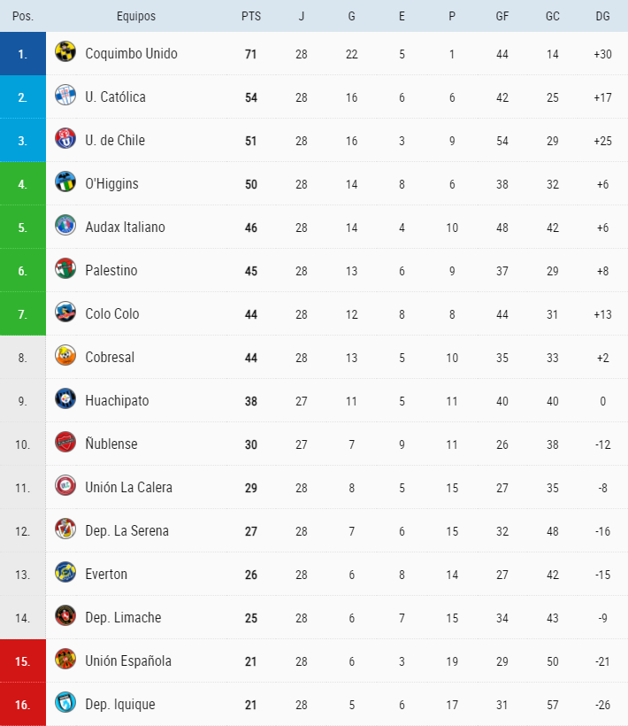 Tabla posiciones fútbol chileno: En Fecha 28 «se juega mucho»