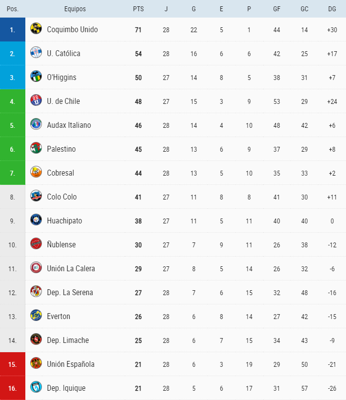 Hoy están descendiendo Unión Española e Iquique, que en la próxima fecha podrían sentenciar su caída a la Primera B.