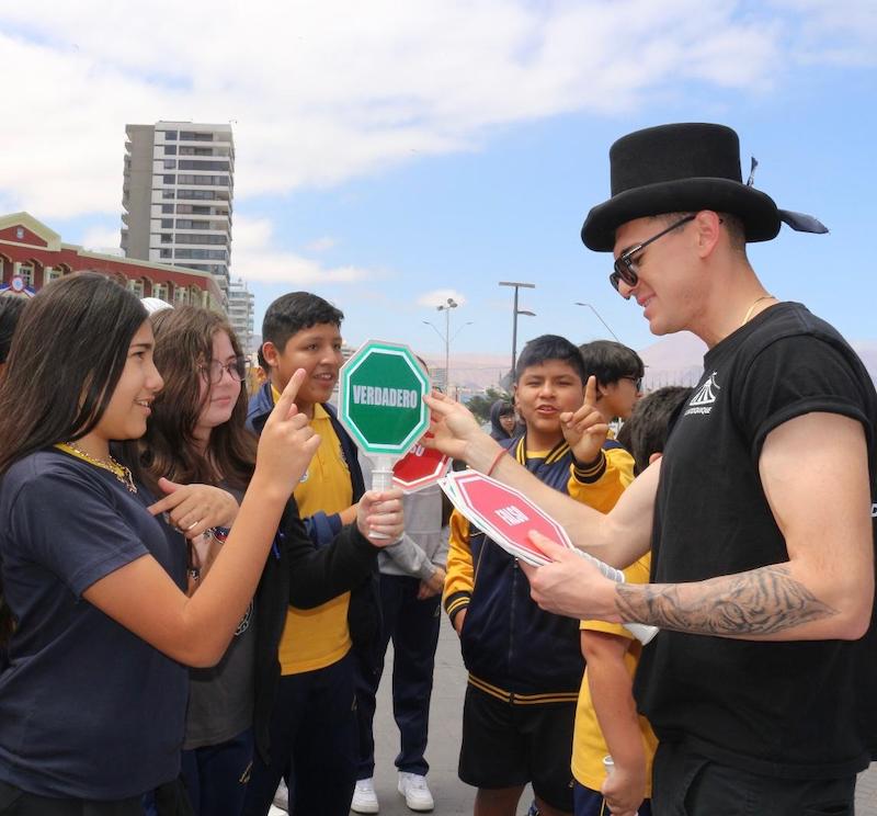 Como parte de la jornada inaugural, se realizaron intervenciones urbanas en Plaza 21 de Mayo (Iquique), Terminal AgroHospicio y Mall Zofri, con dinámicas interactivas a cargo de la Compañía Circo Iquique, que invitaron a familias y estudiantes a reflexionar sobre las fake news y la información en redes sociales. El hito central tuvo lugar en la Plaza 21 de Mayo, con la participación del Delegado Presidencial Regional de Tarapacá, la Seremi de Educación, autoridades de la Universidad Arturo Prat, INACAP y del Programa Explora Tarapacá.