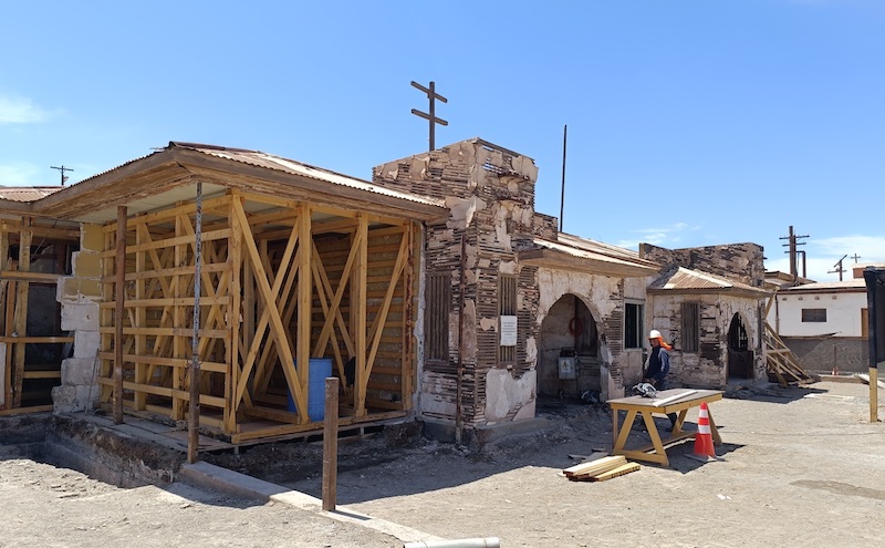 Lo que se busca con las intervenciones, que están en plena ejecución, es evitar la pérdida irreversible del conjunto arquitectónico, garantizando su estabilidad estructural y su continuidad como elemento representativo del campamento salitrero.