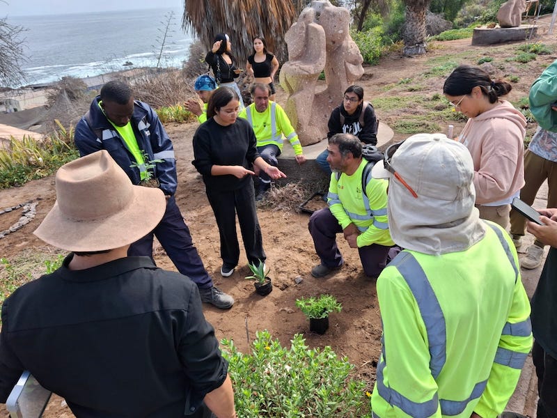 “Fue una jornada de mutuo aprendizaje, donde los estudiantes compartieron lo aprendido durante el semestre en torno al diseño y manejo de áreas verdes en zonas áridas, en diálogo directo con las experiencias que viven en terreno quienes mantienen los espacios verdes de nuestra ciudad”, explicó el profesor de la asignatura Rodolfo Rojas Figueroa.